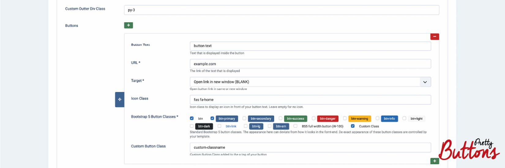 Een module om knoppen weer te geven op een mooi en gemakkelijke manier. Met de mogelijkheid om voor en na de knoppen inhoud toe te voegen.